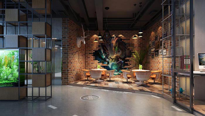 休息區(qū)域、茶水間的設(shè)計(jì),設(shè)計(jì)師在設(shè)計(jì)的時(shí)候,將其安置在一起,兩兩融合的空間使空間的作用發(fā)揮到最大,工業(yè)風(fēng)的注入為空間帶來了愜意、舒適的空間氛圍,讓員工在休息之余可以感受到來自企業(yè)的關(guān)心與愛護(hù)。