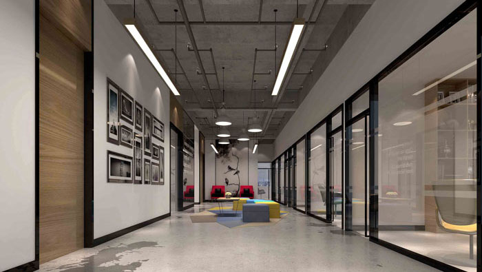 過道的設(shè)計,設(shè)計師在設(shè)計的時候,將休息桌椅安置在空間之中,在不影響空間實際需求的同時,為空間增加新的屬性——勞逸結(jié)合,也從側(cè)面讓客戶感受到企業(yè)的文化與人性化的管理。
