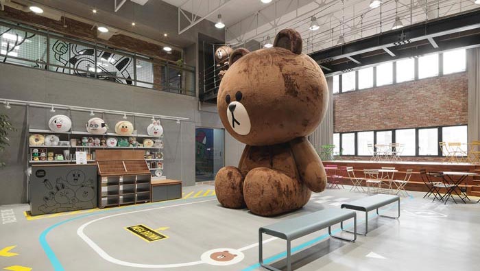 接待區(qū)域的設(shè)計:設(shè)計師在設(shè)計的時候,將其安置在展示區(qū)域的后方,這樣一來就可以利用具象化的卡通人物,其巨大的身形自然的為空間起到阻隔的作用,其次就是此處的氛圍充滿了溫馨、可愛的氣息,在這樣的氛圍中有利于彼此之間的交流,為客戶留下一個好的第一印象。