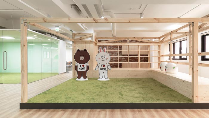 休息區(qū)域的設(shè)計:設(shè)計師在設(shè)計的時候,將其安置在一個開放性的獨立空間之中,說他是獨立性的,是因為空間四周都有框框架架,說他開放是因為雖然周圍有框框架架,但是卻沒有任何的阻礙,員工可以進出自由,在此處玩耍、嬉戲。