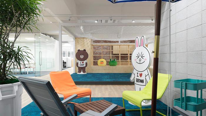度假區(qū)域的設(shè)計:此處的設(shè)計有一點類似度假海灘的感覺,這樣正是設(shè)計師設(shè)計的目的,設(shè)計師希望讓員工在辦公空間之中可以享受到各種新穎、舒適的自然環(huán)境,在此處仿佛置身于海邊,藍藍的海水、輕柔的風(fēng)襲來,讓人不自覺的感到愜意。