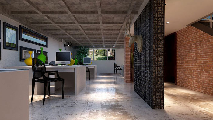 辦公區(qū)域的設計,其亮點就是隔斷的運用與隔斷本身,設計師認為這樣的隔斷既能打破固有格局、區(qū)分不同性質(zhì)的空間,又能使居室環(huán)境富于變化、實現(xiàn)空間之間的相互交流,為辦公空間提供更大的藝術與品位相融合的空間。