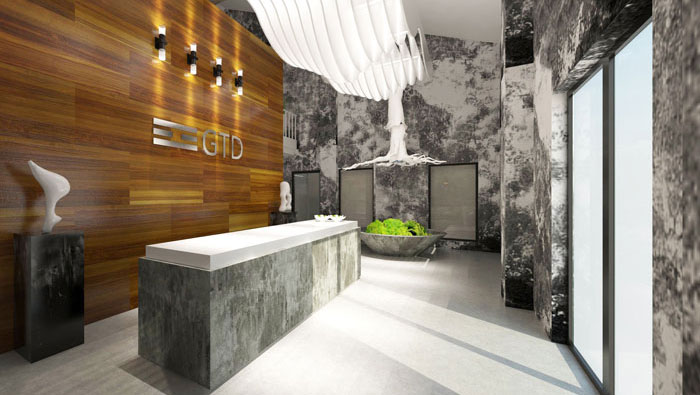 前臺區(qū)域的設(shè)計(jì),設(shè)計(jì)師將建筑本身的優(yōu)點(diǎn)在此處發(fā)揮的淋漓盡致,頂部層次的擴(kuò)展就會將空間顯得尤為大氣與高端。