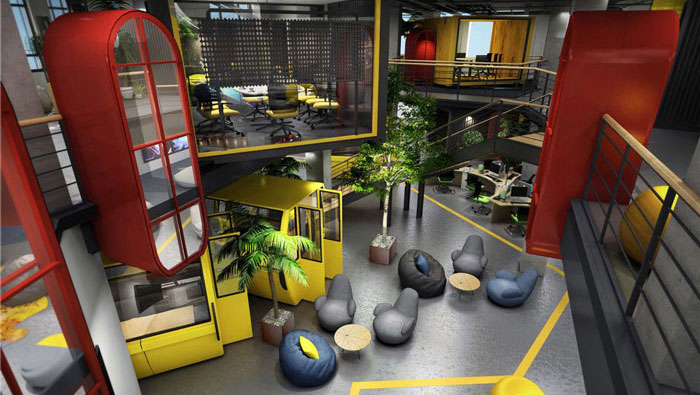 辦公區(qū)域的設(shè)計,設(shè)計師在設(shè)計的時候,將其安置在一個菱形區(qū)域,使的此處空間有很好的采光,有了采光綠植自然得以生長,光合作用下的空間對人有巨大的好處。