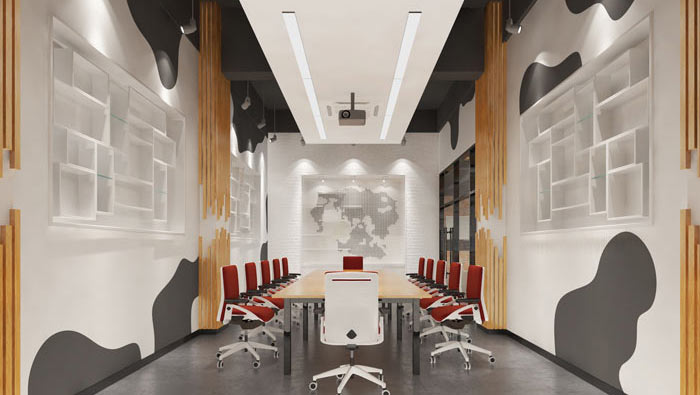 會(huì)議室的設(shè)計(jì):設(shè)計(jì)師在設(shè)計(jì)的時(shí)候,重點(diǎn)在與強(qiáng)調(diào)企業(yè)的向心力,白色本身就有向外擴(kuò)張的作用,設(shè)計(jì)師希望通過(guò)白色的擴(kuò)張來(lái)代表創(chuàng)意思維的擴(kuò)張,以中線區(qū)域的會(huì)議室來(lái)代表企業(yè)內(nèi)部的向心力,以此不僅增加了創(chuàng)意的氛圍,同時(shí)也增加了企業(yè)的向心力。