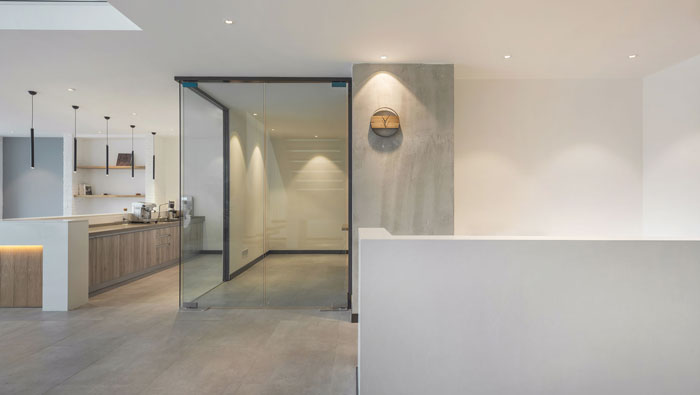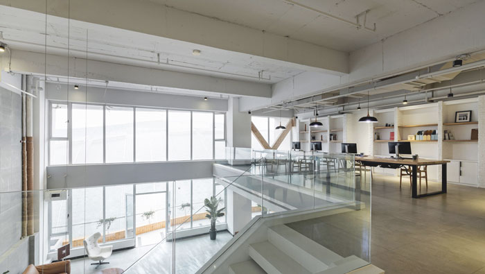 loft風(fēng)格辦公室幕墻設(shè)計:從此處可以看到陽光毫無死角的射入室內(nèi),這也正是設(shè)計師采用玻璃幕墻的初衷,在設(shè)計師看來正是因為有了陽光,才有了現(xiàn)在的一切,故此陽光是設(shè)計中不可或缺的一部分。