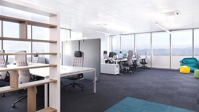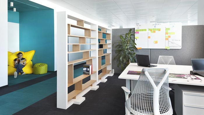 開放式辦公空間的設計:設計師在設計的時候,在其中加入了不同的元素(合的元素),在設計師看來分的對立面就是合,若空間只是一味的分,那么對于空間來說是不圓滿的,同時設計師也向大家展現分的魅力,辦公區(qū)域與會議區(qū)域完全分布在一個空間之中,明媚的眼光完全照射在空間之中,使空間同化在陽光中。