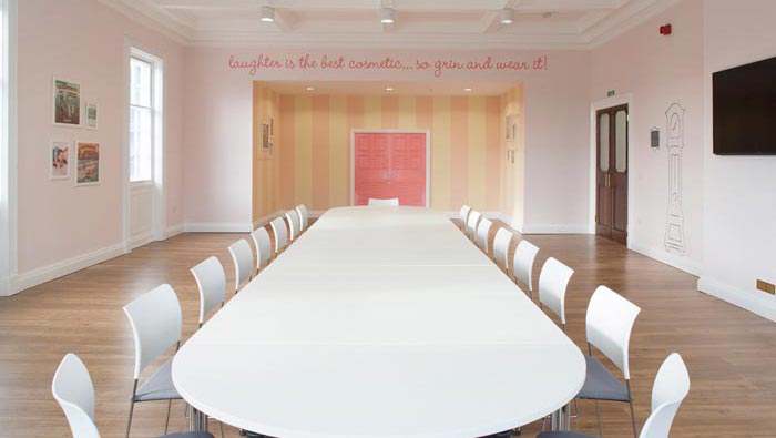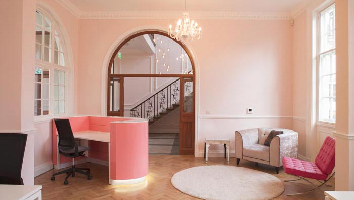 本次為化妝品公司辦公室裝修設計項目,設計師在于客戶交流的過程中,不斷聽到客戶對于“笑”的理解,因為在客戶看來笑容是最好的化妝品,正所謂笑一笑十年少,設計師也是女性,因此受到感染最為直接,故此設計師在設計中以熱情、創(chuàng)造、革新為驅動力,以求打造出與企業(yè)理念相融的辦公格局。