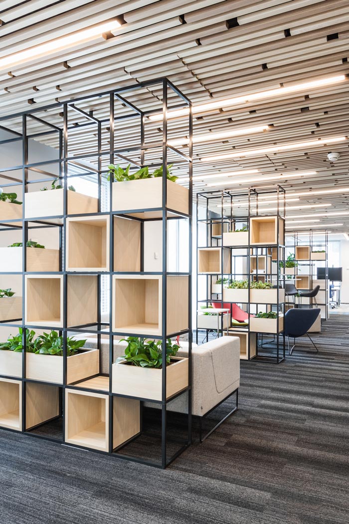 接待區(qū)域的設(shè)計(jì):接待區(qū)由軟裝構(gòu)成凸字型,凸字型的設(shè)計(jì)入口對(duì)應(yīng)前臺(tái),這樣自然地形成了一個(gè)接待區(qū)域,讓客戶自然而然的進(jìn)入其中,不會(huì)感到半點(diǎn)突兀,盡顯企業(yè)以人為本的理念,同時(shí)展示區(qū)域的設(shè)計(jì),設(shè)計(jì)師采用隔斷與綠植相互結(jié)合的方式,以此避免對(duì)整個(gè)空間造成影響。