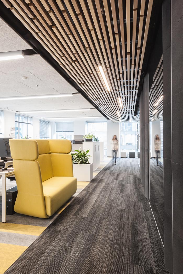辦公區(qū)域的設(shè)計(jì):此處大致有辦公與動(dòng)線組成,動(dòng)線布置在空間的一側(cè),目的就是為了縮小對(duì)空間的浪費(fèi),同時(shí)為辦公空間營造更好的空間氛圍,辦公工位由3人為小組、6人為一大組,組與組之間有動(dòng)線分離,這樣保證部門與部門之間的分離與彼此之間的合作,沙發(fā)的融入為空間帶來了新的變量。