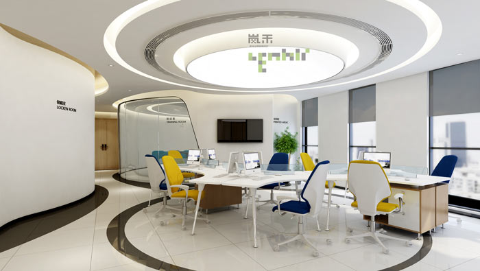 時(shí)尚辦公室辦公區(qū)設(shè)計(jì):圓和曲線成為空間的主要設(shè)計(jì)元素,圓是為了與空間各個(gè)節(jié)點(diǎn)進(jìn)行兼容,曲線是為了讓空間的動(dòng)線可以四通八達(dá)。