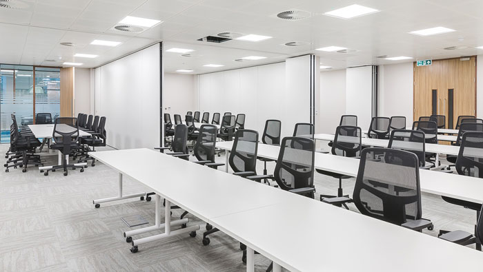 現(xiàn)代簡約辦公室會議室設(shè)計:此處主要為企業(yè)提供一個可以討論的空間,在設(shè)計中有的只是簡單的聯(lián)合,一個儲藏柜將空間一分為二,一下子創(chuàng)造了兩個區(qū)域,這也是設(shè)計師極簡設(shè)計的最好證明。