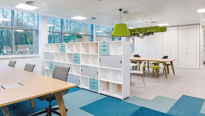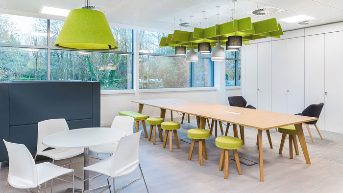 現(xiàn)代簡約辦公室辦公區(qū)設(shè)計:此處給人最大的特點就是充滿活力,設(shè)計師在設(shè)計的時候,沒有將辦公區(qū)固定在某一個區(qū)域,而是希望員工可以自己安排自己的辦公工位,讓員工可以隨時隨地處在一個隨時變化的空間。
