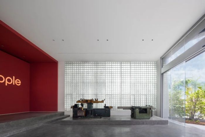 設(shè)計(jì)師注重建筑與環(huán)境的和諧共生,通過對(duì)原入口的功能優(yōu)化、文化大廳的內(nèi)部重塑、以及5F體驗(yàn)館的創(chuàng)新設(shè)計(jì),展現(xiàn)了紅蘋果品牌的文化傳承與未來(lái)愿景。其中,5F體驗(yàn)館以其獨(dú)特的“空器合一”概念為核心,通過簡(jiǎn)潔而有力的設(shè)計(jì)語(yǔ)言,傳達(dá)了人、空間與物品之間的和諧統(tǒng)一。