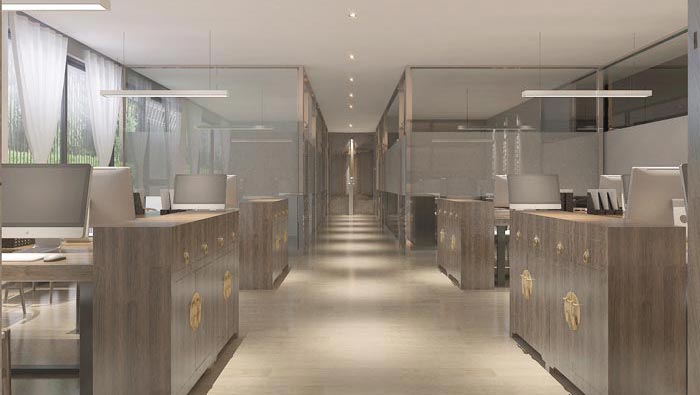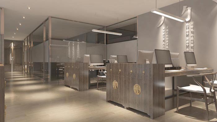 本次為中式風(fēng)格辦公室裝修設(shè)計(jì)項(xiàng)目,本次設(shè)計(jì)面積為250平方,設(shè)計(jì)師在設(shè)計(jì)的時(shí)候,首先就是到實(shí)地進(jìn)行考察,然后與客戶進(jìn)行交流與溝通,在雙方的溝通中了解客戶的需求,并在同時(shí)結(jié)合現(xiàn)場(chǎng)的具體情況給出相對(duì)應(yīng)的設(shè)計(jì)方案構(gòu)想,此方案設(shè)想來自室內(nèi)結(jié)構(gòu)與室外環(huán)境的雙重結(jié)合。