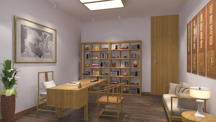 主任辦公室的設(shè)計(jì):此處是中文系主人的辦公室,設(shè)計(jì)師在設(shè)計(jì)的時(shí)候與主任進(jìn)行了相信的溝通,以求了解主任對(duì)于中文的更多見(jiàn)解,在設(shè)計(jì)中設(shè)計(jì)師在中式風(fēng)格中加入了簡(jiǎn)約風(fēng),讓整個(gè)空間看起來(lái)簡(jiǎn)單整潔,看似簡(jiǎn)單的背后又讓人流連忘返,在此地辦公、學(xué)習(xí)都是一個(gè)不錯(cuò)的場(chǎng)所。