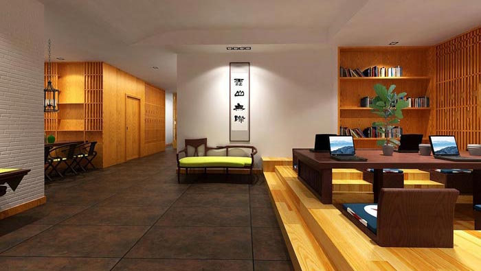 辦公區(qū)域的設(shè)計(jì):企業(yè)是一群志同道合的青年聚集而成,每一個(gè)人都有自己的理想與抱負(fù),但在設(shè)計(jì)師看來千里之行始于足下,故此在與客戶交流的時(shí)候,重點(diǎn)提出關(guān)于心境成長(zhǎng)的重要性,這也受到了客戶的贊同,故此設(shè)計(jì)師以中式+禪意的模式對(duì)辦公區(qū)進(jìn)行了融合設(shè)計(jì),讓大家可以在辦公的同時(shí)不斷的磨練自己的心境。