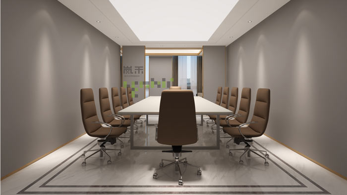 新中式辦公室會議室設計:整個空間給人的第一感覺就是干凈,白色中透著灰色、灰色中透著白色,白色增強了空間的視覺感,灰色則中和了空間的色彩感。