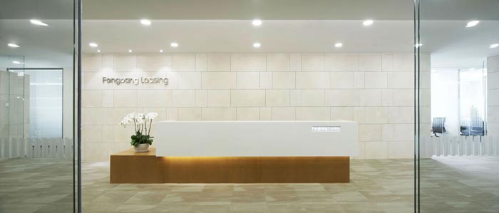 汽車租賃公司辦公室前臺設計:在門間距的設計中,設計師也融入了視覺的感受,客戶第一眼就可以將前臺收入眼底,當客戶進入空間后,柔白色給客戶一種別有洞天之感。