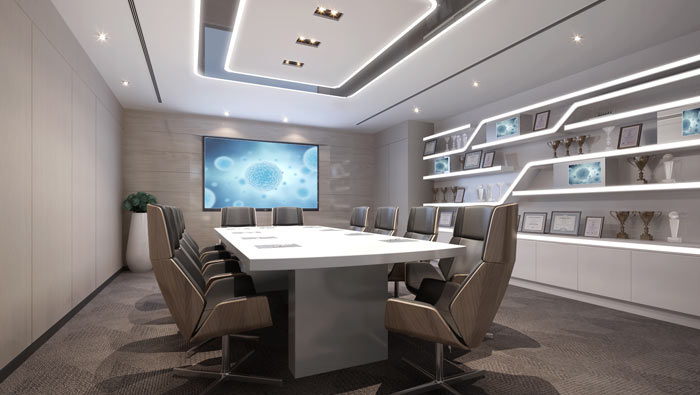會(huì)議室的設(shè)計(jì):設(shè)計(jì)師在設(shè)計(jì)的時(shí)候,希望在滿足空間基本功能之外可以為空間增添新的屬性——展示,在設(shè)計(jì)師看來此處區(qū)域不僅可以作為會(huì)議室,同時(shí)也是與客戶進(jìn)行交流的場(chǎng)所,設(shè)計(jì)師希望讓客戶對(duì)企業(yè)有更多的了解。