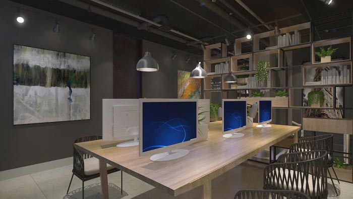 辦公區(qū)域的設(shè)計(jì):設(shè)計(jì)師對(duì)于此處有十分高的要求,因?yàn)榇颂幨瞧髽I(yè)發(fā)展的動(dòng)力所在,企業(yè)的發(fā)展在于人才,那么如何留住人才就是設(shè)計(jì)師需要考慮的問(wèn)題,六人辦公桌坐落在空間之中,設(shè)計(jì)師舍棄了所有的復(fù)雜設(shè)計(jì),尋求的是一種簡(jiǎn)單的美,簡(jiǎn)單本身就是一種復(fù)雜到極致的美,這個(gè)哲學(xué)問(wèn)題本身就對(duì)人有很大的啟發(fā)性。