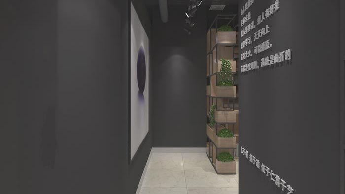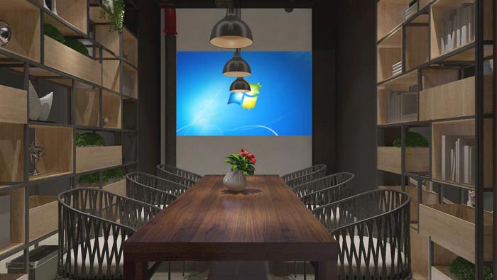 會(huì)議室的設(shè)計(jì):此處位于兩個(gè)展示隔斷的中間區(qū)域,這也是唯一一個(gè)可以利用的空間,由于空間面積有限所有多元化的設(shè)計(jì)就十分必要,隔斷對(duì)外可以阻隔實(shí)現(xiàn),對(duì)內(nèi)可以起到墻體的作用,同時(shí)也不會(huì)對(duì)整個(gè)空間造成影響,反而對(duì)空間形成了一個(gè)互補(bǔ)的格局。