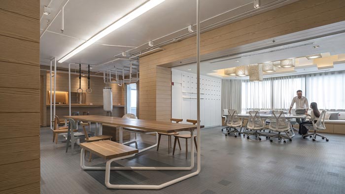 IT公司辦公室辦公區(qū)設(shè)計:固定辦公區(qū)與活動辦公區(qū)相鄰而處,這樣的布局方式就是希望讓員工有多個辦公區(qū)域,辦公區(qū)不固定在一起,就是希望讓員工自己主導(dǎo)自己的工作,這樣的辦公效率事半功倍。