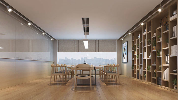 交流區(qū)域的設計:設計師在設計的時候,將交流區(qū)域設置在一個巨大的落地窗戶空間,在設計師看來這樣的設計可以增加客戶與企業(yè)之間的關系,仿佛拉家常一般,讓空間氛圍由公轉私,這樣在客戶的心中就可以放開戒心,讓交談更加順暢。