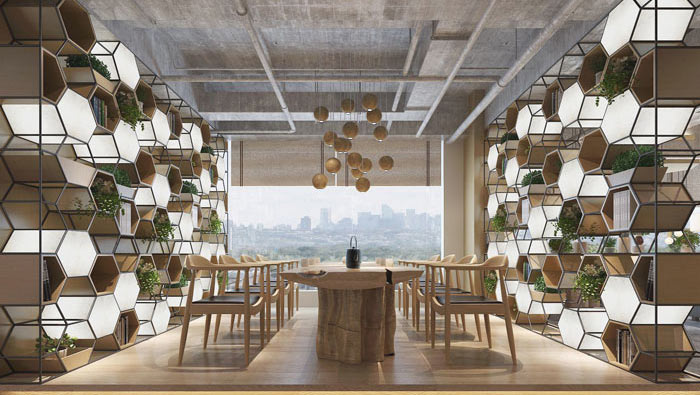 休息區(qū)域的設計:設計師在設計的時候,將空間完全開放化,同時將休息區(qū)域設置成階梯狀,寓意不斷攀爬的知識高峰,設計師希望讓大家在休息的時候可以體會到生活的美好,并以此為契機不斷的攀爬,來達到自己生活的頂峰。