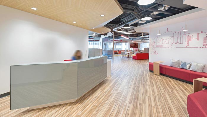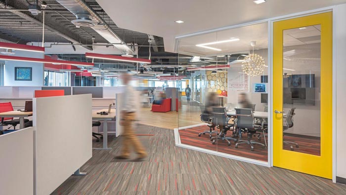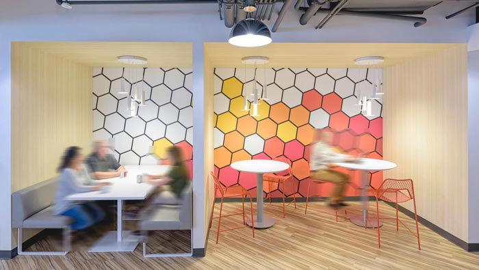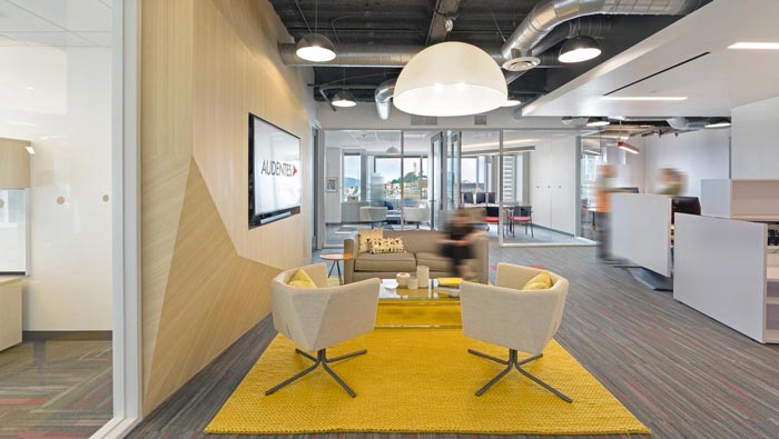 辦公區(qū)域的設(shè)計:設(shè)計師在設(shè)計的時候,著重考慮了開放式與封閉式的優(yōu)點與缺點,在考慮再三之后設(shè)計師中和了相互之間的優(yōu)點,以開放式為一個大的框架、在其中包含封閉式的設(shè)計,讓開放與封閉之間形成一個很好的互動,讓開放包含封閉、讓封閉互補開放。
