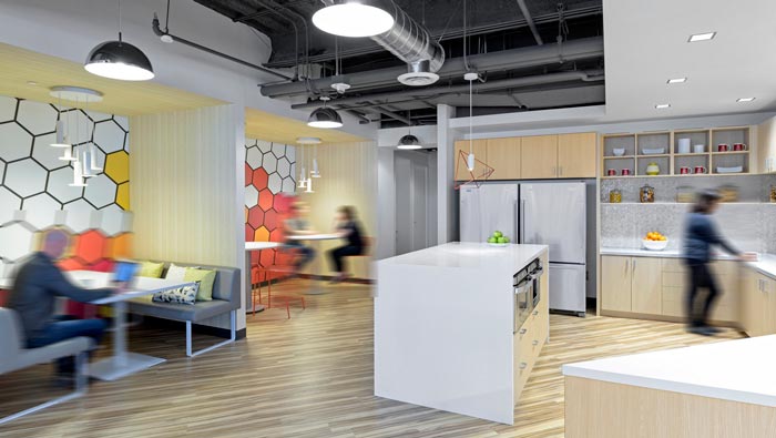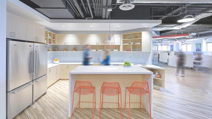 茶水間的設(shè)計:設(shè)計師在設(shè)計的時候,將吧臺也融入其中,在設(shè)計師看來茶水間是企業(yè)的一個休閑場所,設(shè)計師希望在此處員工可以脫離現(xiàn)實的壓力、工作的壓力,在此處可以相互交流、彼此攀談,在此處可以忘卻壓力,可以在此處重新歸零。