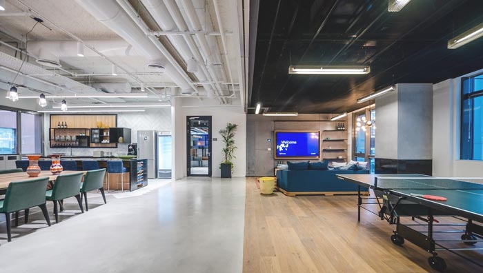 辦公區(qū)域的設計:設計師在設計辦公區(qū)域的同時,對每一個部門都進行了充分的了解,目的就是為打造輔助空間做準備,通過上圖可以看出辦公空間的后方都有一個獨立的空間,這個空間就是根據(jù)每一個部門的不同屬性,所特意打造的空間,目的就是為了讓辦公更加順暢。
