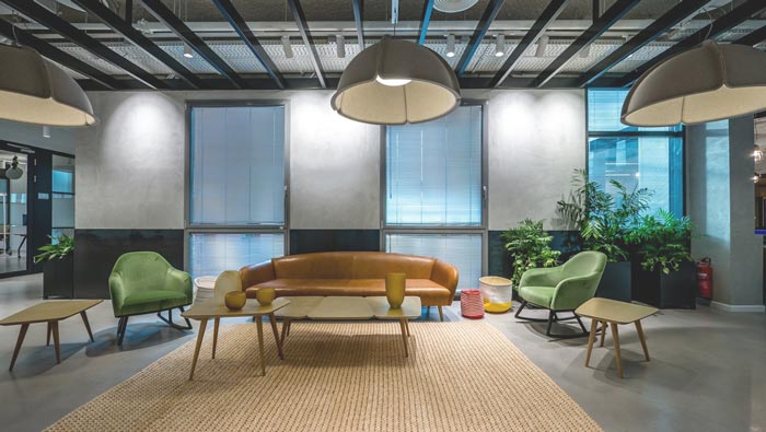 休息區(qū)域的設計:此處主要的目的就是讓員工在這里休息、放松,在設計中設計師與客戶達成共識,雙方都認為企業(yè)未來的發(fā)展重點在員工身上,故此對于員工的身心雙方都十分重視,此處給人的感覺像是客廳,目的就是希望員工可以企業(yè)之中找到家的感覺。