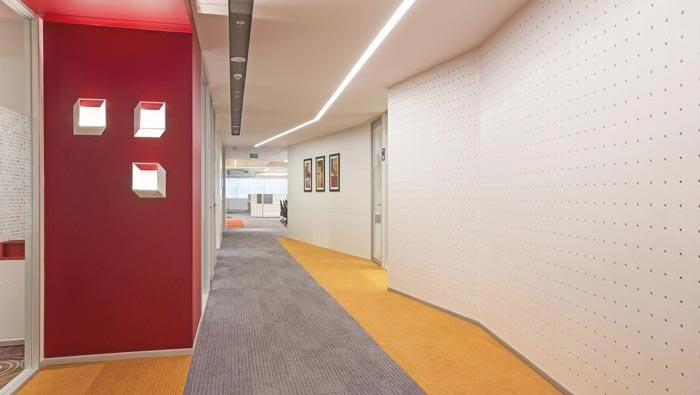 會議室的設(shè)計:設(shè)計師在設(shè)計的時候,考慮過很多設(shè)計手法,最后設(shè)計師還是決定采用色彩與簡約相結(jié)合的方式,因為色彩讓人感覺到生活與自然的魅力,簡約讓人心神更加開放,設(shè)計師希望會議在一個心神開放的空間之中進行,這樣有利于員工之間的開誠布公與相互交流,色彩可以不斷凈化我們的心靈。