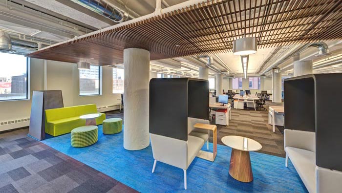休息區(qū)域的設(shè)計(jì):設(shè)計(jì)師在設(shè)計(jì)的時(shí)候,將其安置在辦公空間的中心區(qū)域,此處的中心區(qū)域指的是兩個(gè)辦公空間之間的空曠空間,此處采用的與交流空間的設(shè)計(jì)類似,其一就是與空間進(jìn)行分離,其二就是與整個(gè)空間進(jìn)行搭配,在設(shè)計(jì)師看來(lái)這是勞逸結(jié)合的一個(gè)經(jīng)典配比。