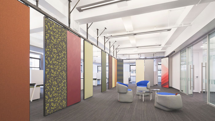 辦公區(qū)域的設(shè)計(jì):懸掛的隔斷如一扇扇門將辦公區(qū)域擋在視線之外,但懸掛的隔斷不是死的而是靈活的,一扇扇可拉可合,開放的辦公區(qū)加上半封閉的個人辦公區(qū),兩者之間形成一個很好的結(jié)合,這樣的設(shè)計(jì)旨在消除弊端,同時也在為企業(yè)營造利于發(fā)展的辦公新格局。