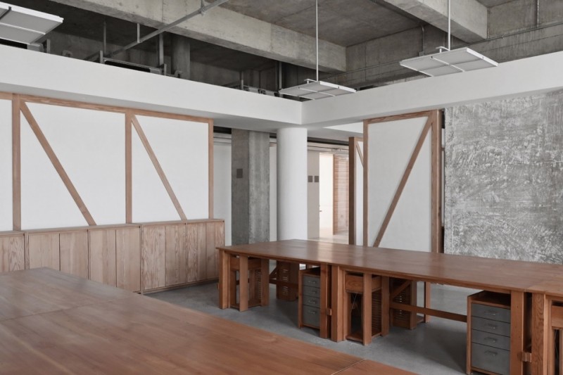 品牌先前的辦公空間見證了該品牌從一個工作室壯大成為如今上百人規(guī)模的服裝公司的過程。很多空間功能是伴隨著規(guī)模擴(kuò)大而逐步增加的。因此,存在如樣衣板房與辦公室相鄰等等諸多布局的不合理之處。所以創(chuàng)始人希望在這個新辦公室的設(shè)計中,首先建立一套完整的空間邏輯與工作流程,從而提升部門間的溝通效率。其次,因為服裝行業(yè)的特殊性,從每季的樣品、物料,到員工的個人生活物品,消化和組織大量的分類收納空間也尤為重要。