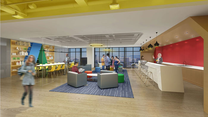茶水間的設(shè)計,設(shè)計師沒有設(shè)計固定的場所,這樣可以使各部門的溝通與聯(lián)系,可以有效地得以提升同事之間的凝聚力、向心力,仿佛重新回自由純真,不受拘束的時代。