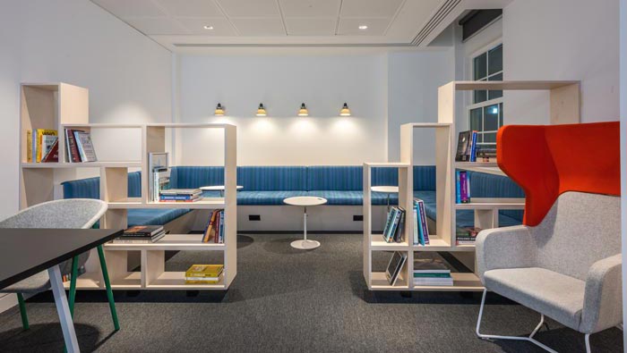 休息區(qū)域的設計:設計師在設計的時候,想要為員工打造一個集合休息與學習的空間,在設計師看來員工需要的不僅僅是休息,更需要的是一個交流的場所,在此間讓員工可以無憂無慮進行學習與相互討論,讓員工在此間不斷成長與突破。