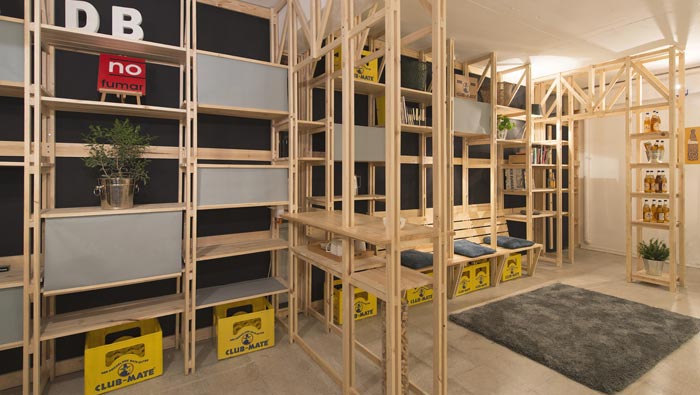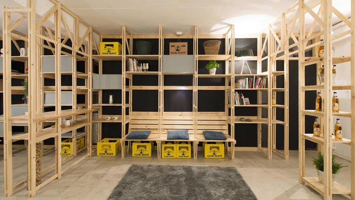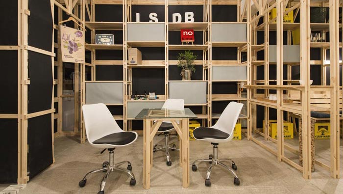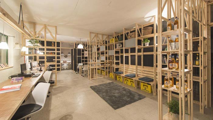 交流區(qū)域的設(shè)計(jì):設(shè)計(jì)師在設(shè)計(jì)的時(shí)候,通過(guò)不斷的嘗試與重組,最后決定利用軟裝方便移動(dòng)、成本較低、不占空間的優(yōu)勢(shì),將其安置在一個(gè)角落的凹處,這樣的設(shè)計(jì)更保留了區(qū)域的活性,讓此處可分可合,使用時(shí)三兩下就將其搭建成功,不使用時(shí)三兩下就可以將其收起,方便、快捷。
