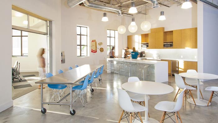 ? 茶水間的設(shè)計(jì):設(shè)計(jì)師在設(shè)計(jì)的時(shí)候,將其安置在一個(gè)獨(dú)立的空間,同時(shí)將茶水間與休息區(qū)域相互融合,在設(shè)計(jì)師看來(lái)茶水間是員工休息的重要場(chǎng)所,在此地員工可以遠(yuǎn)離繁重的工作壓力,在此次員工可以靜下心來(lái),此地的寓意就是讓您靜下來(lái),休息一下重新上路。