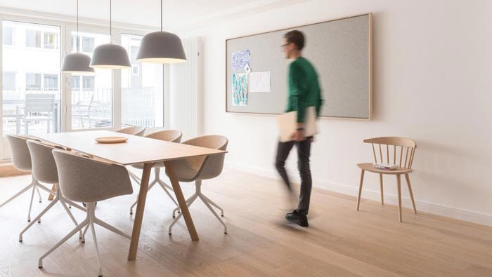 會(huì)議室的設(shè)計(jì):此處是一個(gè)多功能的辦公場(chǎng)所,此處與外部陽(yáng)臺(tái)連接在一起,這樣可以避免會(huì)議的單一性,因?yàn)闀?huì)議在很多人眼中單調(diào)、無味的,故此會(huì)議往往會(huì)起到消極的作用,故此設(shè)計(jì)師將會(huì)議室與陽(yáng)臺(tái)相互串聯(lián),就是希望以陽(yáng)臺(tái)的自然與開放,為會(huì)議提供更多的可能性。