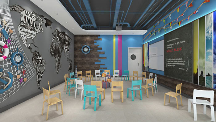 教學(xué)區(qū)域的設(shè)計(jì):設(shè)計(jì)師在設(shè)計(jì)的時(shí)候,將其設(shè)置成一個(gè)圓形,摒棄了傳統(tǒng)的設(shè)計(jì)手法,在設(shè)計(jì)師看來(lái)這樣的設(shè)計(jì),更利于教師關(guān)注到每一個(gè)孩子,同時(shí)孩子與孩子之間緊靠在一起,也能在無(wú)形中產(chǎn)生安全感,讓孩子的心中徹底放松,以求盡快的融入其中。