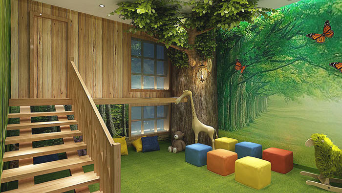 玩耍區(qū)域的設(shè)計(jì):設(shè)計(jì)師在設(shè)計(jì)的時(shí)候,將大自然搬入室內(nèi),讓孩子可以在這樣的空間中不斷的開(kāi)拓自己的想象能力,讓孩子可以無(wú)時(shí)無(wú)刻的受到自然的熏陶,設(shè)計(jì)師希望為孩子打造一個(gè)無(wú)壓力、無(wú)負(fù)擔(dān)的空間,讓他們?cè)谄渲袩o(wú)憂無(wú)慮的成長(zhǎng)。