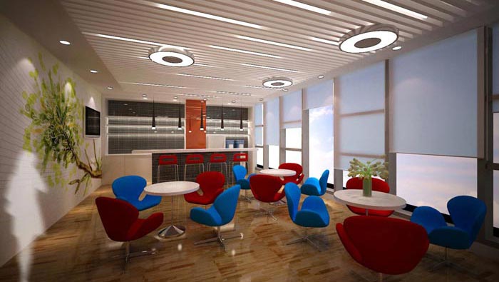 休息區(qū)域的設(shè)計,設(shè)計師將茶水間與休息區(qū)域相結(jié)合,即保證空間的最大利用,也保證空間的協(xié)調(diào)性。