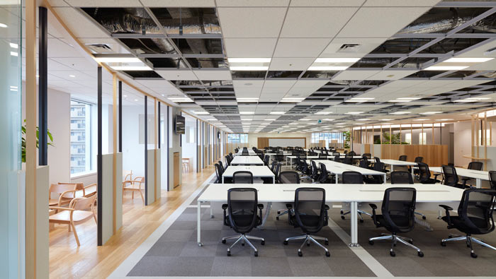 國際貿(mào)易公司辦公室辦公區(qū)設(shè)計:整個辦公區(qū)就是一個開放的辦公區(qū)域,設(shè)計師在此基礎(chǔ)上進行了優(yōu)化,設(shè)計師按照比例分布在空間之中,目的就是希望整個空間井然有序。