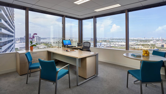 總經(jīng)理辦公室設計:整個空間三處都是落地窗,整個自然環(huán)境映入整個空間,設計師要做的就是不破壞整個空間,而是在此基礎上盡量減少設計的痕跡,讓設計與周邊環(huán)境相互融合,為整個空間添磚加瓦。