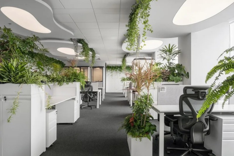 在與創(chuàng)始人溝通時,他說道:“在國外時我非常享受在家里后花園工作的感覺:明亮的光線,花花草草圍繞在身邊,看著天上的白云慢慢漂過,這讓我做事非常靜心和放松…”根據(jù)場地的特點和客戶的需求,我們決定打造花園式的辦公環(huán)境,綠植環(huán)繞在空間中,營造出一種自然和諧美感。