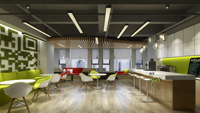 網(wǎng)絡(luò)辦公室茶水間設(shè)計(jì):空間很大一部分被用來作休息之用,設(shè)計(jì)師希望員工可以在這里遠(yuǎn)離喧鬧的工作、與快速發(fā)展的社會(huì)進(jìn)程,在此地回歸自己、找回自己,為下一步的進(jìn)步積蓄能量。