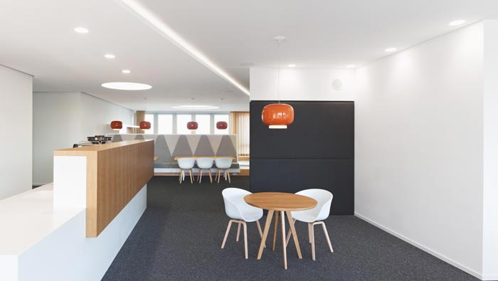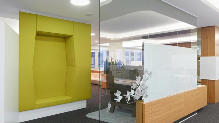 軟件公司辦公室入門區(qū)設(shè)計(jì):設(shè)計(jì)師在設(shè)計(jì)的時(shí)候,對每一個(gè)空間都進(jìn)行了無數(shù)次的搭配,在設(shè)計(jì)師看來一個(gè)設(shè)計(jì)的好壞,往往從細(xì)節(jié)上可以感覺出來,此處就是一個(gè)明證,一小塊圓形地毯+創(chuàng)意沙發(fā)就完成了一個(gè)區(qū)域的建立,真是讓人嘆為觀止。